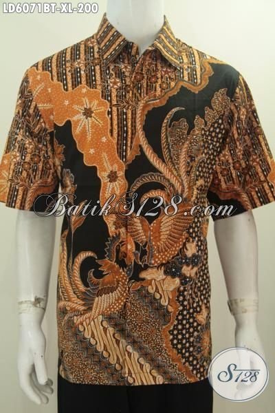 Hem Batik Pria Dewasa, Busana Batik Keren Halus Size XL, Baju Batik Modis Lengan Pendek Kombinasi Tulis Kwalitas Istimewa Untuk Penampilan Lebih Gaya [LD6071BT-XL]