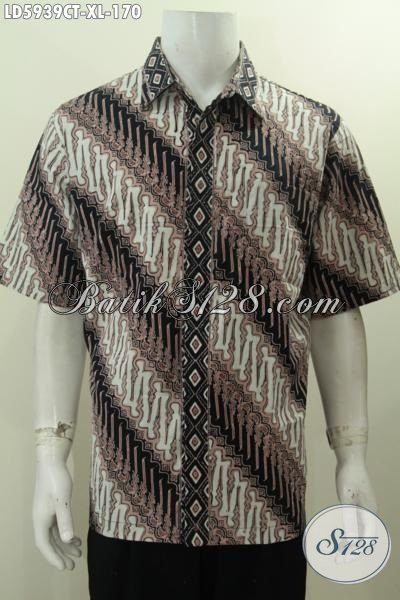 Hem Batik Pria Dewasa Ukuran XL, Kemeja Batik Lengan Pendek Motif Parang Proses Cap Tulis Daleman Tidak Pakai Furing, Elegan Buat Kondangan Tampil Menawan [LD5939CT-XL]