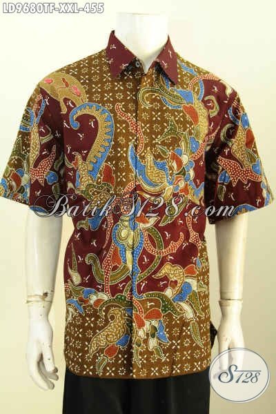Hem Batik Pria Lengan Pendek Full Furing, Busana Batik Big Size Motif Mewah Proses Tulis Yang Bikin Pria Gemuk Tampil Gagah Dan Bergaya [LD9680TF-XXL]