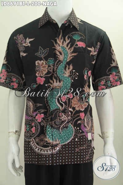 Hem Batik Pria Lengan Pendek Motif Naga Untuk Penampilan Lebih Gagah Dan Menawan, Baju Batik Solo Istimewa Harga 200K Bahan Halus Bisa Juga Buat Hangout [LD6691BT-L]