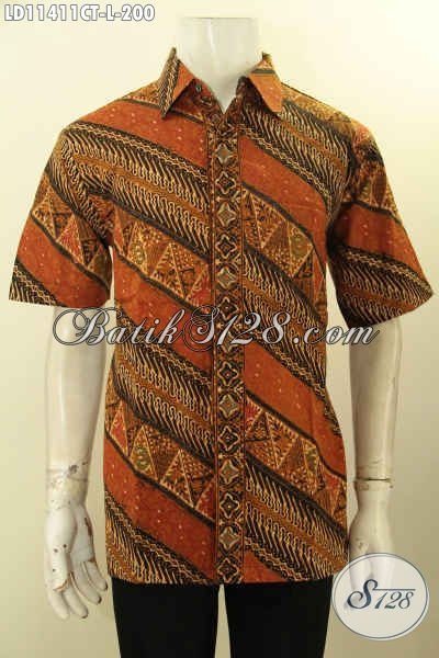 Hem Batik Pria Lengan Pendek Nan Elegan, Busana Batik Solo Halus Kwalitas Istimewa Bahan Adem Motif Terkini Proses Cap Tulis Hanya 200K [LD11411CT-L]