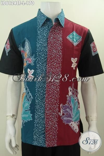 Hem Batik Pria Model Lengan Pendek Tidak Pakai Furing, Berbahan Halus Motif Trendy Dengan Kombinasi Tiga Warna Terlihat Lebih Keren Dan Gaul [LD6124CT-L]