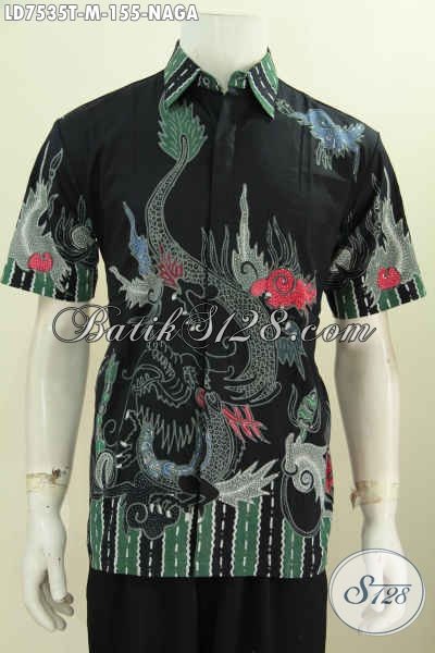 Hem Batik Pria Motif Naga Untuk Tampil Gagah Dan Tampan, Berbahan Halus Proses Tulis Model Lengan Pendek [LD7535T-M]