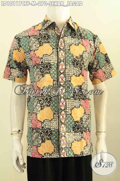 Hem Batik Pria Motif Sekar Jagad, Kemeja Lengan Pendek Elegan Dan Mewah Dengan Daleman Full Furing, Penampilan Lebih Macho [LD10117CTF-M]