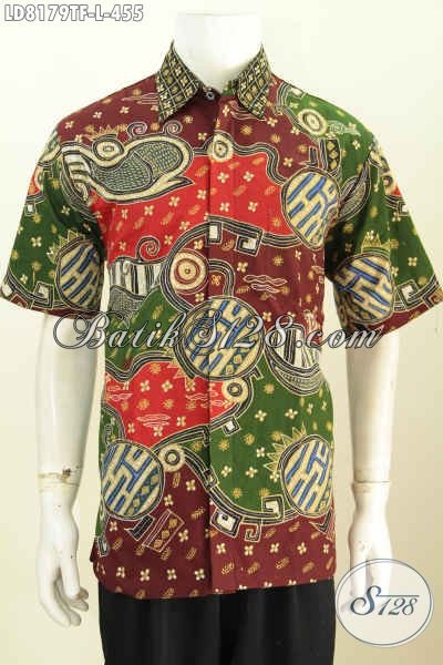 Hem Batik Pria Paling Keren, Baju Batik Lengan Pendek Modis Warna Bagus Proses Tulis Daleman Full Furing Terlihat Lebih Berkelas [LD8179TF-L]