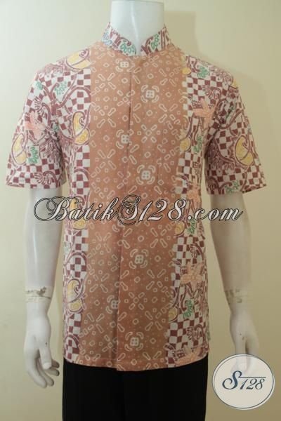 Hem Batik Pria Warna Pastel Desain Dua Motif, Baju Batik Lengan Pendek Halus Proses Cap Asli Dari Pengerajin Solo [LD4013CK-L]