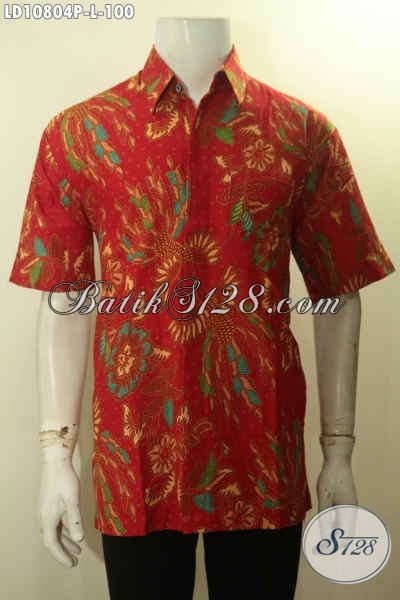 Hem Batik Printing Warna Merah Motif Unik, Kemeja Batik Lelaki Untuk Terlihat Beda Dan Gaya, Bahan Halus Lengan Pendek Kwalitas Istimewa Hanya 100K [LD10804P-L]