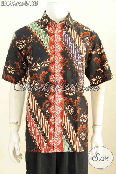 Hem Batik Solo Motif Kombinasi, Baju Lengan Pendek Elegan Ukuran L Proses Cap Tulis Bahan Adem Untuk Penampilan Lebih Istimewa [LD8495CT-L]