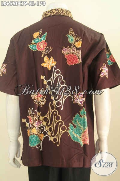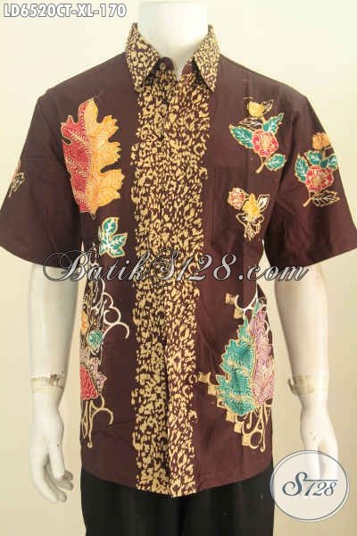 Hem Batik Solo Terbaru Untuk Pria Dewasa, Baju Batik Lelaki Model Lengan Pendek Dasar Coklat Kwalitas Halus Motif Bagus Proses Cap Tulis Harga 170K [LD6520CT-XL]