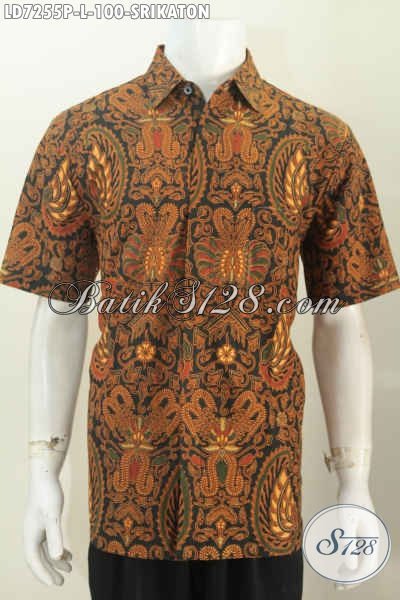 Hem Batik Srikaton Ukuran L, Pakaian Batik Halus Lengan Pendek Proses Printing Asli Buatan Solo [LD7255P-L]