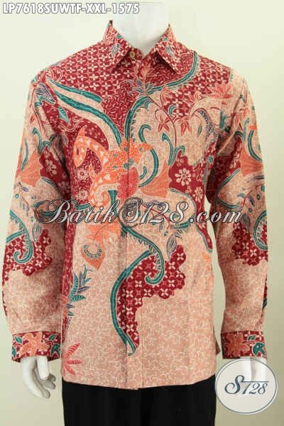 Hem Batik Sutra Premium Warna Merah Model Lengan Panjang Motif Istimewa Proses Tulis, Pilihan Tepat Pria Gemuk Tampil Gagah Dan Tampan [LP7618SUWTF-XXL]
