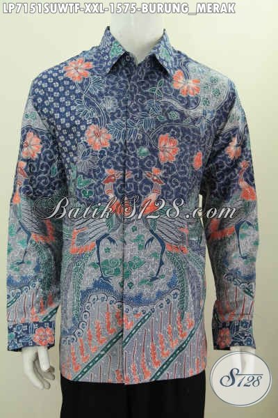 Hem Batik Sutra UntukPria Gemuk, Baju Batik Premium Motif Burung Merah Proses Tulis Asli Dari Solo Model Lengan Panjang Full Furing Hanya 1.5 Jutaan [LP7151SUWTF-XXL]