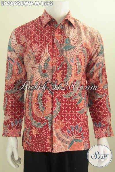 Hem Batik Sutra Warna Merah, Baju Kemeja Lengan Panjang Halus Full Furing Motif Mewah Tulis Tangan Harga 1.5 Jutaan [LP7069SUWTF-M]