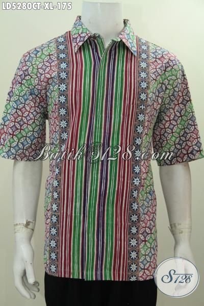 Hem Batik Trendy Lengan Pendek Cap Tulis, Pakaian Batik Untuk Jalan-Jalan Dan Ke Pesta Size XL, Pas Untuk Lelaki Dewasa Terlihat Lebih Modis [LD5280CT-XL]