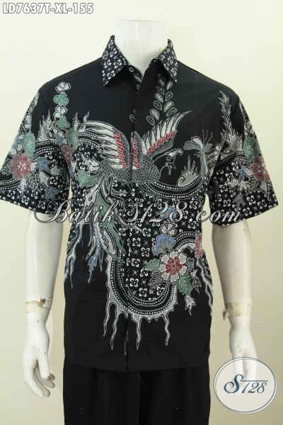 Hem Batik Trendy Waran Hitam Elegan Berpadu Motif Keren Yang Bikin Pria Terlihat Modis Dan Berkelas, Bahan Adem Proses Tulis Model Lengan Pendek [LD7637T-XL]