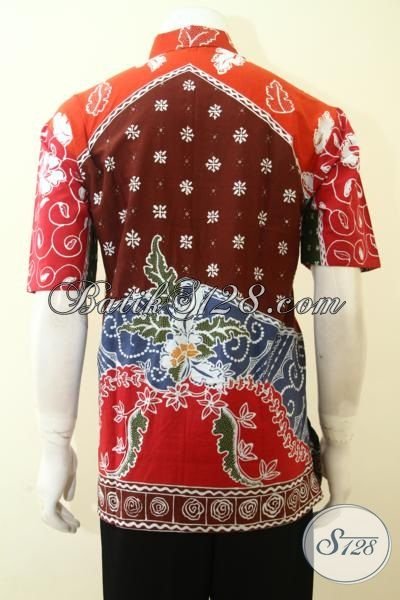 Hem Batik Tulis Bagus Motif Unik Sentuhan Klasik Dengan Kombinasi Warna Merah Hijau Dan Coklat, Busana Batik Lengan Pendek Cowok Tampil Tampan Setiap Hari [LD3631T-L]