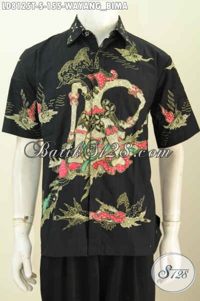 Hem Batik Tulis Motif Wayang Bima, Kemeja Batik Lengan Pendek Dasar Hitam Elegan harga 155K Proses Tulis [LD8125T-S]