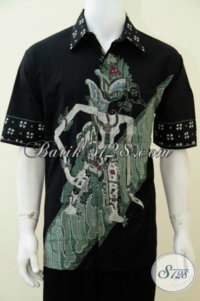 Hem Batik Tulis Warna Hitam Motif Wayang Baladewa, Baju Batik Lengan Pendek Kwalitas Bagus Harga Terjangkau Asli Buatan Solo [LD2641T-XL]