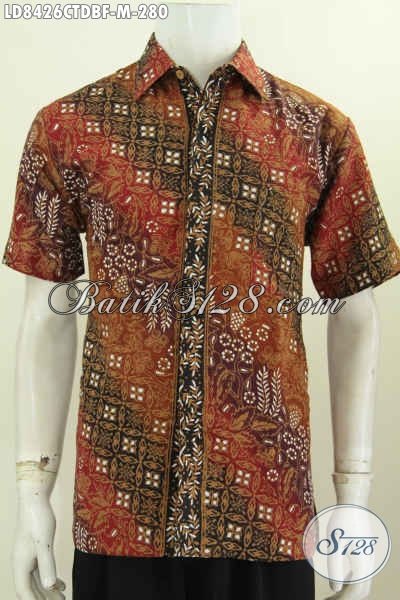 Hem Batik Ukuran M Lengan Pendek, Baju Batik Pria Formal Full Furing Bahan Kain Dolby Kwalitas Istimewa Harga 280K Motif Cap Tulis [LD8426CTDBF-M]