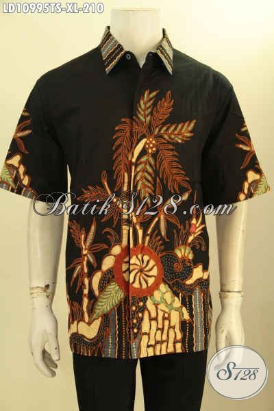 Hem Batik Warna Hitam Motif Bagus Model Lengan Pendek, Kemeja Batik Pria Desain Terbaru Proses Tulis Soga, Pilihan Tepat Untuk Tampil Berkelas Dengan Harga Terjangkau [LD10995TS-XL]