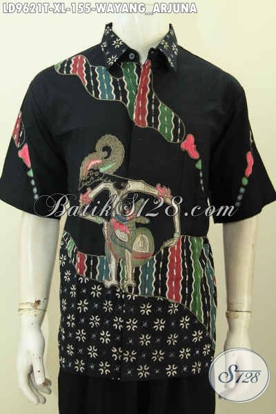 Hem Batik Wayang Arjuna, Pakaian Batik Pria Dewasa Yang kekinian Model Lengan Pendek Bahan Adem Proses Tulis Hanya 155K [LD9621T-XL]