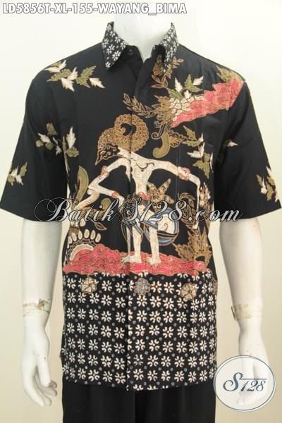 Hem Batik Wayang Motif Bima Bikin Penampilan Lebih Gagah, Baju Batik Lengan Pendek Tanpa Furing Dasar Hitam Ukuran XL Proses Tulis Untuk Lelaki Dewasa Hanya 100 Ribuan [LD5856T-XL]