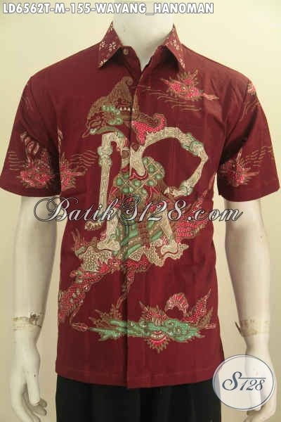 Hem Batik Wayang Warna Merah Motif Hanoman, Kemeja Batik Lengan Pendek Proses Tulis Harga Hanya 150 Ribuan [LD6562T-M]