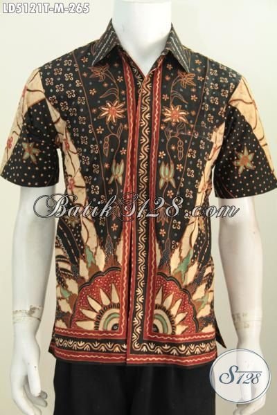 Hem Kemeja Batik Jawa Tengah Motif Klasik Nan Mewah, Baju Lengan Pendek Berbahan Batik Tulis Halus Desain Istimewa Membuat Pria Tampak Gagah Mempesona [LD5121T-M]