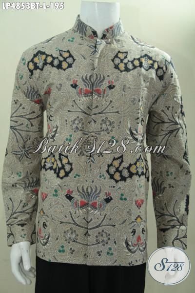 Hem Kerja Batik Lengan Panjang Kerah Shanghai, Baju Batik Koko Modern Berbahan Halus Motif Klasik Proses Kombinasi Tulis Tampil Gagah Dan Tampan [LP4853BT-L]