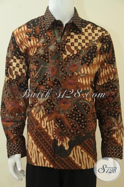 Hem Kerja Batik Lengan Panjang Kwalitas Halus, Baju Batik Modis Cowok Tampil Rapi, Busana Batik Kombinasi Tulis Full Furing Desain Formal [LP4382BTF-XL]