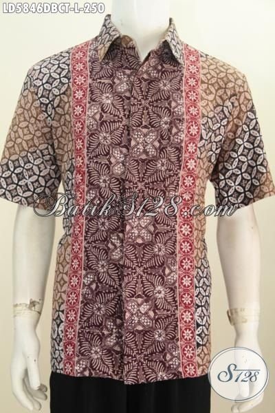 Hem Kerja Batik Model Lengan Pendek Bahan Doby, Busana Batik Keren Motif Kombinasi Proses Cap Tulis Asli Dari Solo Spesial Buat Lelaki Muda Karir Aktif [LD5846DBCT-L]