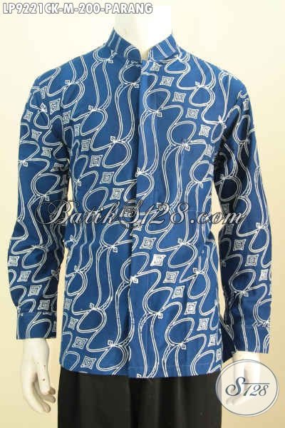 Hem Koko Kerah Shanghai Warna Biru Motif Parang, Kemeja Batik Klasik Elegan Proses Cap Model Lengan Panjang, Pas Untuk Acara Resmi [LP9221CK-M]