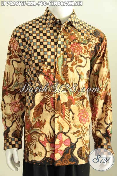 Hem Lengan Panjang 3L, Baju Batik Istimewa Halus Proses Tulis Soga Motif Cendrawasih Spesial Buat Pria Gemuk Daleman Di Lengkapi Furing [LP7328TSF-XXL]