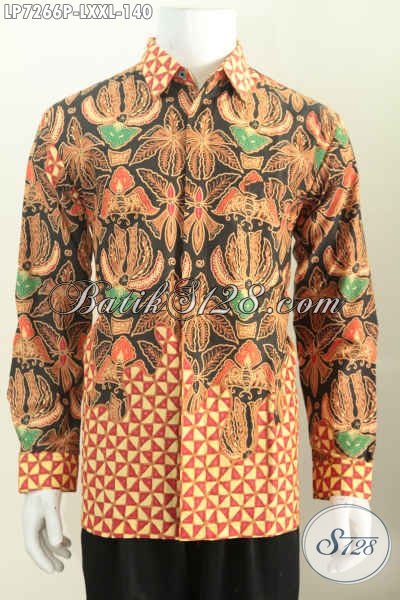 Hem Lengan Panjang Elegan Motif Bagus Dan Mewah, Baju Batik Formal Buat Rapat Dan Kerja Kantoran Tampil Berwibawa [LP7266P-L , XXL]