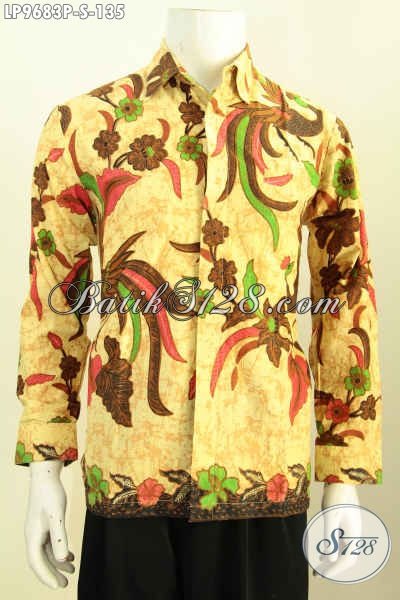 Hem Lengan Panjang Halus Motif Bunga Proses Printing, Kemeja Batik Solo Asli Yang Modis Buat Pesta Dan Acara Santai [LP9683P-S]
