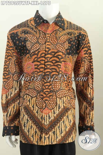 Hem Lengan Panjang Premium Bahan Sutra Ukuran Jumbo, Baju Batik Mewah Halus Lengan Panjang Full Furing Motif Klasik Tulis Tangan Spesial Untuk Lelaki Gemuk [LP7293SUWTF-XXL]