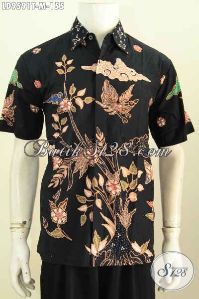 Hem Lengan Pendek Dasar Hitam Elegan Berkelas Motif Kekinian Proses Tulis, Baju Batik Santai Yang Modis Untuk Pakaian Kerja Kantoran [LD9591T-M]