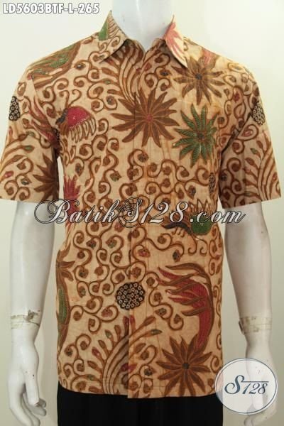 Hem Lengan Pendek Modis Pake Furing Berbahan Batik Kombinasi Tulis Istimewa, Pakaian Batik Kerja Buat Lelaki Karir Kantoran Tampil Lebih Bergaya [LD5603BTF-L]