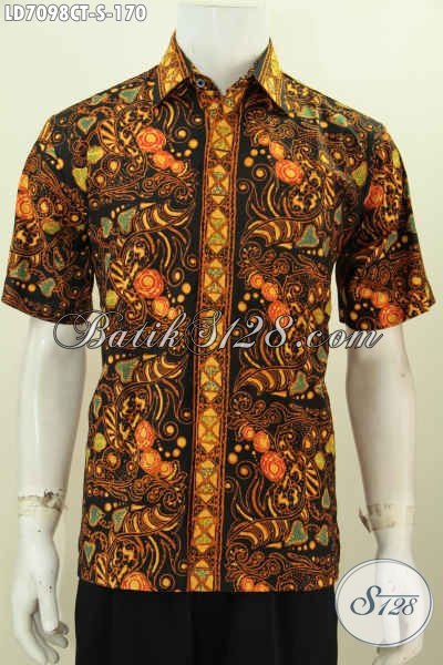 Hem Lengan Pendek Pria, Baju Batik Modis Desain Trendy Motif Mewah Proses Cap Tulis, Bikin Cowok Ganteng Maksimal [LD7098CT-S]