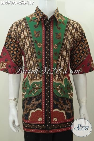 Hem Lengan Pendek Ukuran Jumbo Berbahan Batik Printing Halus Kwalitas Istimewa, Pakaian Batik Pria Gemuk Motif Mewah Tampil Gagah Dengan Harga Murmer [LD4916P-XXL]