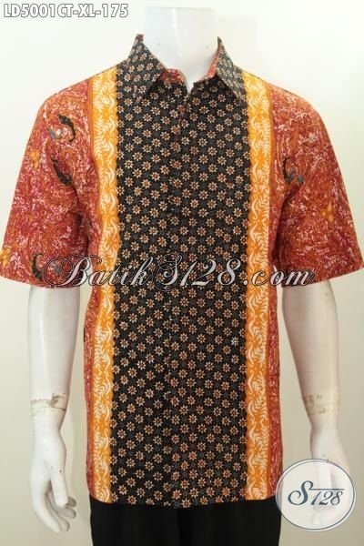 Hem Lengan Pendek Warna Berkelas Berbahan Batik Solo Cap Tulis, Pakaian Batik Tiga Motif Kwalitas Halus Tampil Keren Dan Berwibawa [LD5001CT-XL]