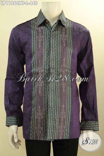 Hem Tenun Jawa Tengah Warna Ungu Lengan Panjang Full Furing, Produk Busana Tenun Nan Istimewa Bahan Halus Untuk Rapat Dan Acara Formal Lainnya [LP11260NF-L]