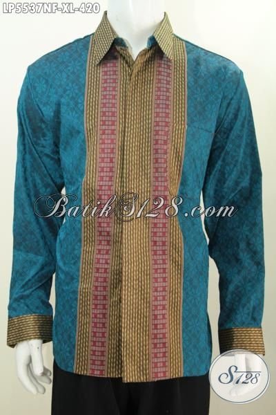 Hem Tenun Lengan Panjang Ukuran XL Daleman Pake Furing, Baju Tenun Biru Motif Bagus Kwalitas Premium Kesukaan Lelaki Karir Sukses [LP5537NF-XL]