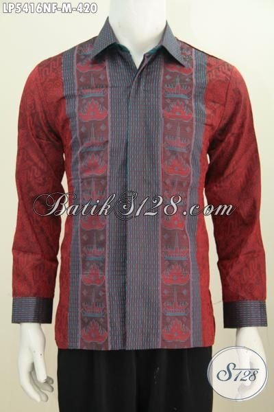 Hem Tenun Lengan Panjang Warna Merah, Produk Busana Tenun Istimewa Dengan Daleman Full Furing Bikin Penampilan Makin Gagah Dan Percaya Diri [LP5416NF-M]