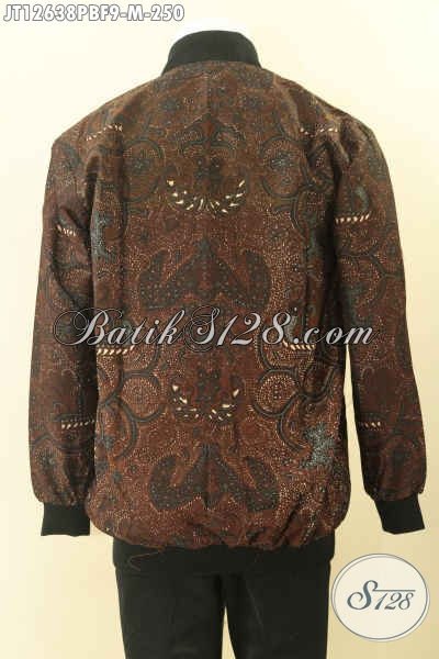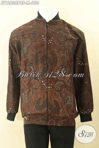 Jaket Batik Pria Kekinian Model Bomber, Batik Jaket Modern Kwalitas Bagus Bahan Halus Motif Elegan Daleman Full Furing Dormeuil Nan Berkelas [JT12638PBF-M]