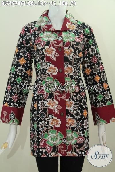 Juak Pakaian Batik 3L Model Blus Kerah Kotak, Baju Batik Trendy Proses Cap Tulis Modis Buat Jalan-Jalan Serta Elegan Untuk Baju Kerja Wanita Gemuk [BLS4278CT-XXL]
