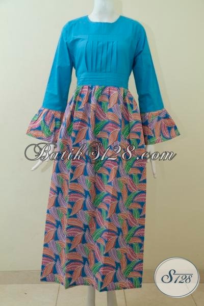 Jual Abaya Batik Solo Warna Biru Muda Berpadu Bawahan Motif Terbaru Yang Terlihat Modis, Baju Gamis Wanita Muda Masa Kini Tampil Lebih Bergaya [G1855P-M]