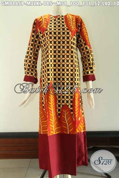 Jual Aneka Gamis Batik Koleksi Terbaru, Busana Wanita Masa Kini Yang Ingin Tampil Anggun Berkelas, Bahan Halus Motif Elegan Kombinasi Kain Polos Di Bagian Bawah Hanya 100 Ribuan [GM9865P-M , L , XL]