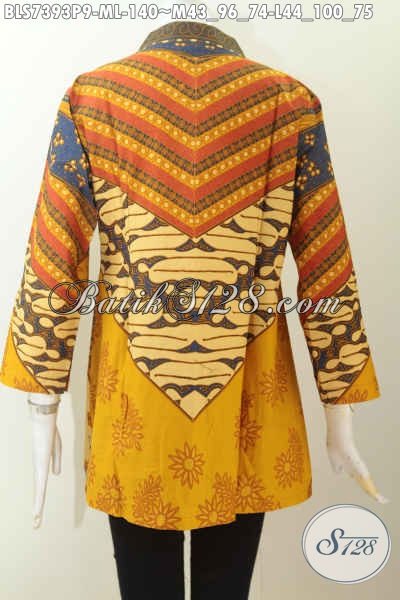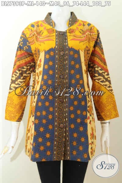Jual Baju Batik Atasan Wanita, Blus Batik Solo Elegan Motif Sinaran Dengan Kerah Shanghai 140K [BLS7393P-M , L]