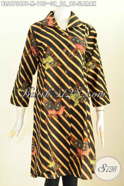 Jual Baju Batik Atasan Wanita, Pakaian Batik Modern Cocok Untuk Kerja Dan Jalan-Jalan Bahan Halus Proses Kombinasi Tulis Asli Buatan Solo [BLS6756BT-M]